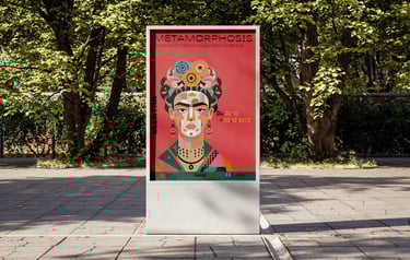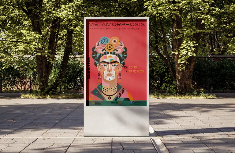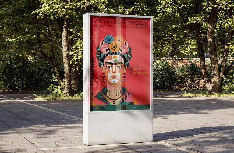 Frida Kahlo, l'icône transformée.Son portrait, recréé en formes géométriques, traduit sa force et sa douleur à l’ère numérique.Un visage classique, repensé avec des codes digitaux pour parler de métamorphose.